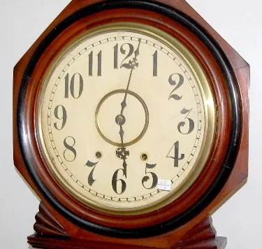 New Haven Long Drop Wall Regulator Clock: ebony trim; 11" dial; time and strike. 34"...