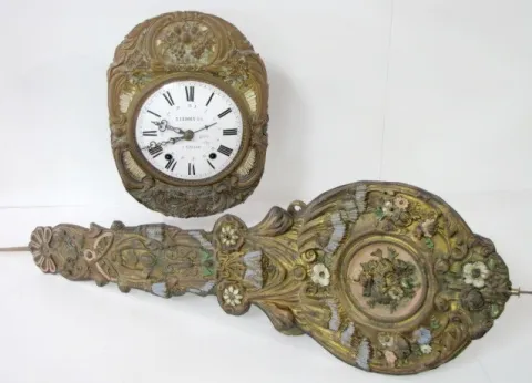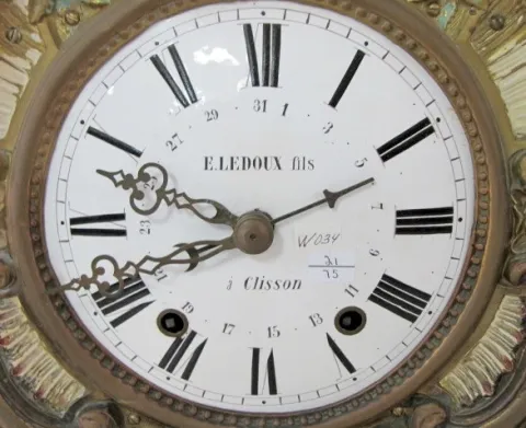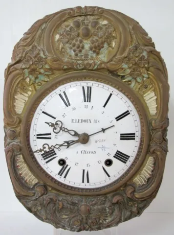 Ornate Signed French Calendar Mobier Clock: strikes hour only; 8" porcelain dial signed E. Ledoux fils a clisson; with simple calendar; circa 1860; ma...