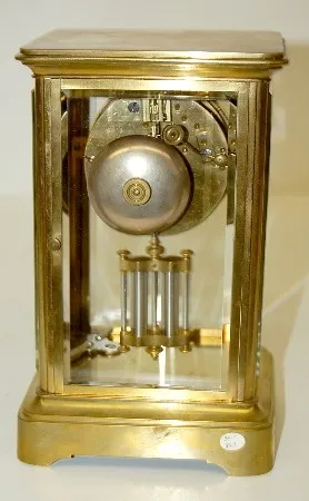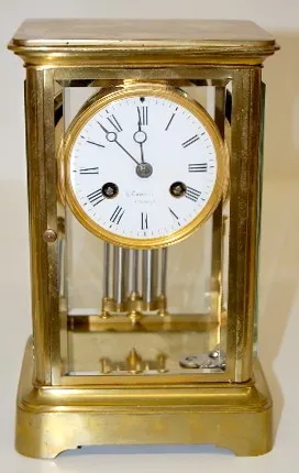 8 Day T and S French Crystal Regulator Clock: porcelain dial reads "E Caldwell-Philadelphia"; 3" dial; movement numbered 6038; has key. Not tested for...