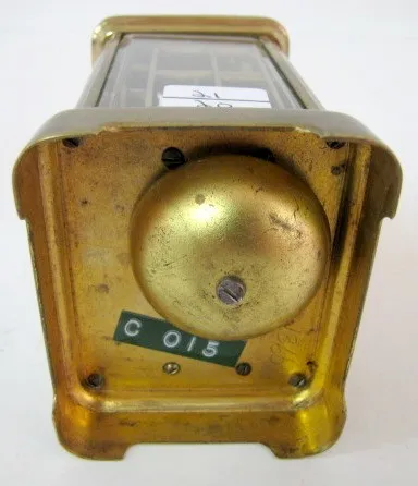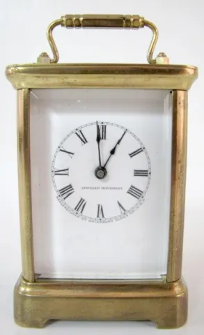 Waterbury 8 Day Repeater Carriage Clock w/Alarm: 8 day time and strike; repeater w/alarm; porcelain dial; Roman numerals; beveled glass; jeweled movem...