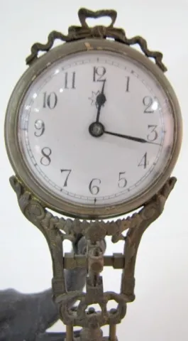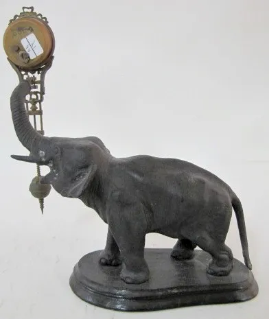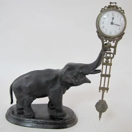 Junghans Black Elephant Swinger Clock: 3 day; time only; porcelain dial; circa 1900. 10 3/4"...