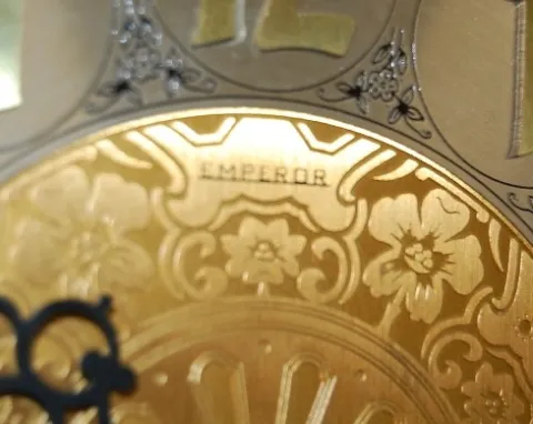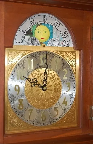 Walnut Emperor Chiming Grandfather Clock: West German movement; rod strike; moon phase; with operating instructions; not antique. 80" ...