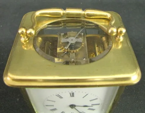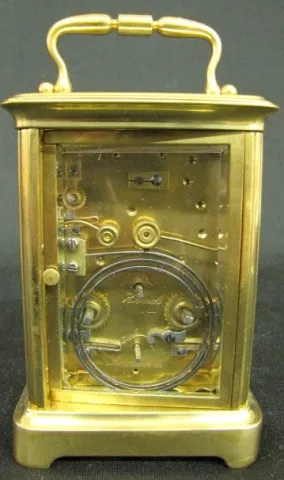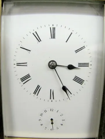 Brevete SGOG HA Carriage Clock: marked on bottom; paper dial; seconds bit; movement numbered 4778; oval glass on top; no key; not tested. (Door want t...