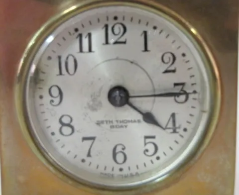 Seth Thomas 8 Day Carriage Clock: 8 day time only; painted dial; Arabic numerals; beveled glass. 4"...