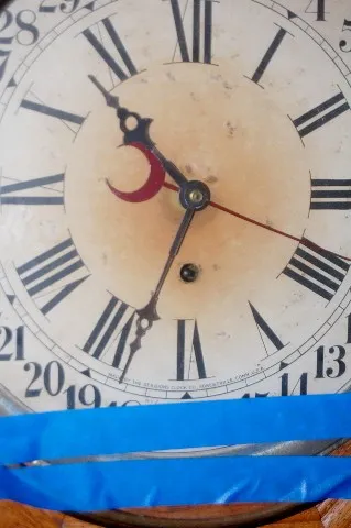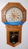 Sessions Oak Calendar Schoolhouse Clock: (Stained paper dial; separated bezel.)...