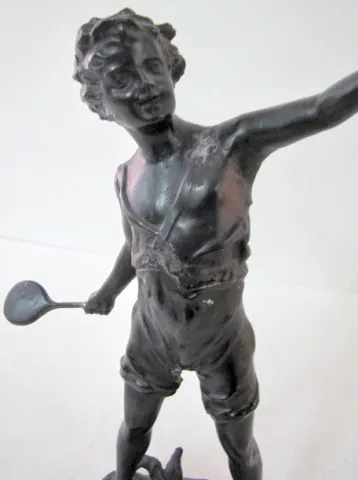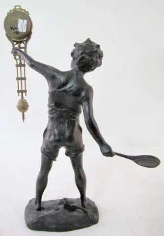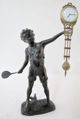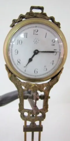 Junghans Cricket Boy Swinger Clock: 3 day; time only; porcelain dial; circa 1900. 16"...