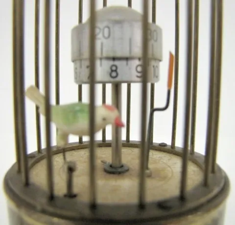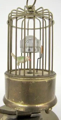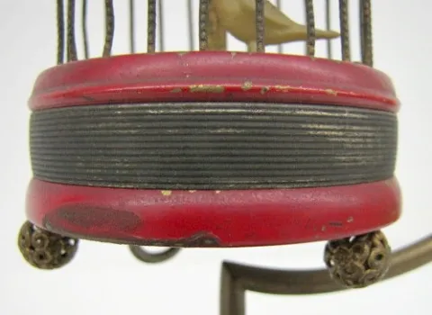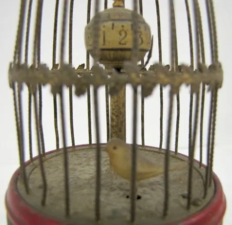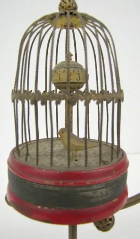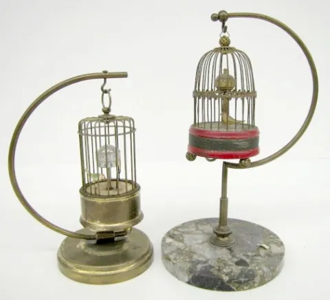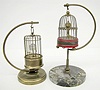 2 Bird Cage Annular Dial Desk Clocks: 1.) Brass, 8". 2.) Marble base ornate brass, red and black, 10 1/2". (Both need cleaned.)...
