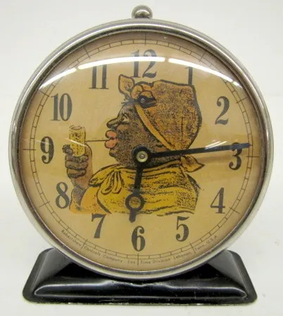 Lux Black Mammy Smoking Pipe Alarm Clock: paper dial....