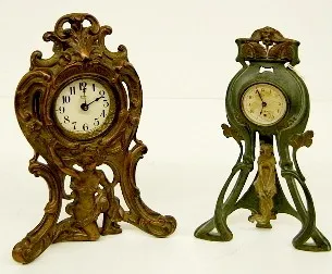 2 Metal Art Nouveau Novelty Dresser Clocks