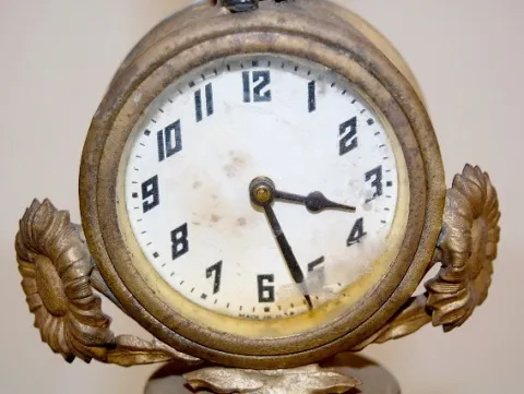 Metal Clock Lamp w/ Bear and Winged Figures
