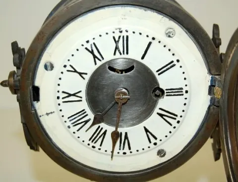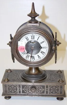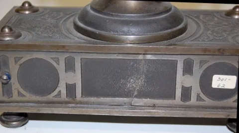 Tucker Bronze Shelf Clock, Signed L. Hubbell: 30 hour movement; painted dial; spade handles; movement signed L. Hubbell Pat'd Oct 10, 1865. (Crack in ...
