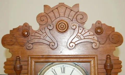 Waterbury "Gibson" Walnut Carved Kitchen Clock