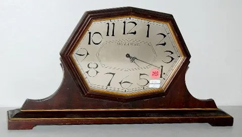 Waltham Ultra Thin Wooden Dresser Clock: metal dial; thin case; winds on the bottom. Not running. 9 1/4" x 18" x 2 3/4"...