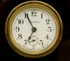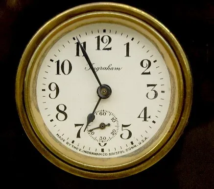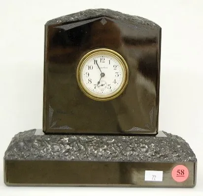 Ingraham Lava Glass Dresser Clock: black; looks like a granite tomb marker; time only; with seconds bit; 1 3/4" dial; smooth and rough finish. 8 1/2" ...