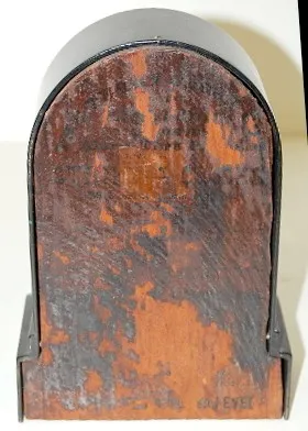 Early Iron Round Top Terry Clock: paper dial; offset winder at 7; with pendulum; not tested; no label. (Dial stained.) 9"...