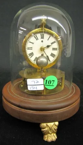 Briggs Rotary Pendulum Clock w/Dome: not marked; paper dial; older model. (Not running; dome does not fit stand.) 7"...