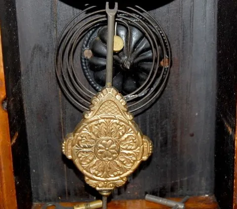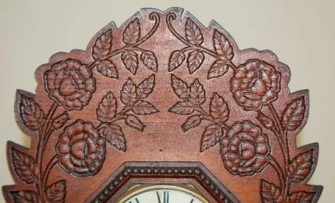 Oak Gilbert Navy No. 26 Kitchen Clock: oak pressed carved floral case; time and strike. (Some restoration.)...