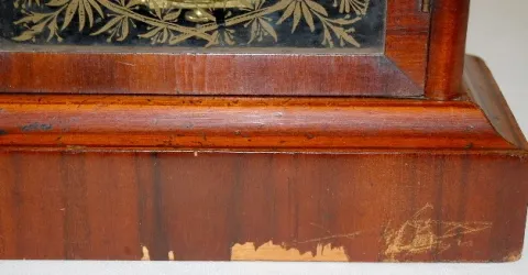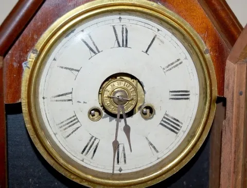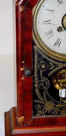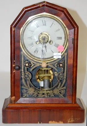 Jerome and Co. Rosewood Clock w/ Alarm: brass trim, time and strike. (Worn dial, veneer chips.)...