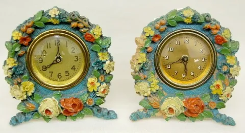 2 Floral Wreath Keywind Clocks