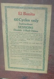 Sessions "El Bonito" Electric Mantle Clock: inside door label "El Bonito"; 2 tone wood. (Cord has been cut; sold as is.)...