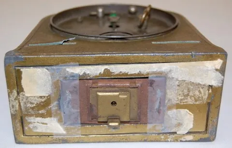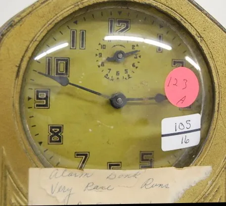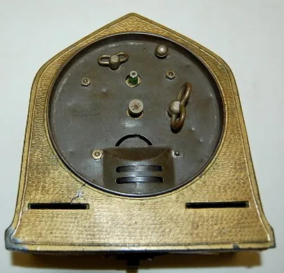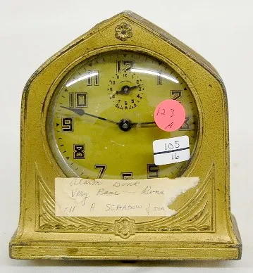 A. Schadow and Son Art Nouveau Alarm Clock: 1913; metal case; New York. (Scratches to case.) 6"...