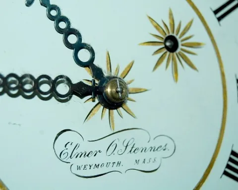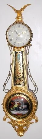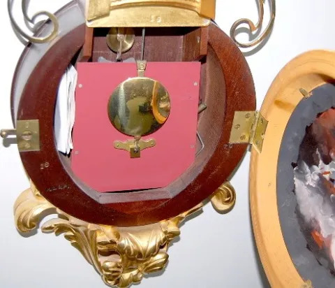 E.O. Stennes Girandole Aurora Glass Clock: gold gilt case; case number 16 and stamped M.C.I.P. (made case in prison); all original. 45" x 12" *** Plea...