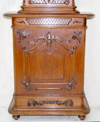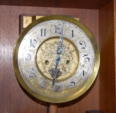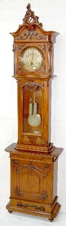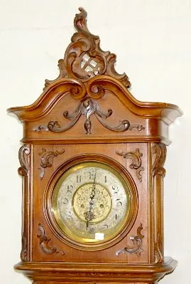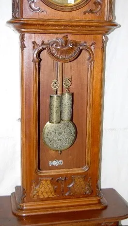 Ornate German Schlenker-Kienzel Floor Regulator: Baroque style; 2 weight; 8 day; strikes half hour and hour; very ornate; engraved dial, weights and p...