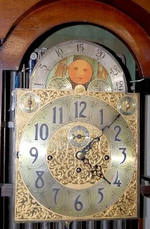 Herschedes Crown 9 Tube 3 Wt. Tall Case: mahogany case; triple chime and strike; serial number 407163; dial C, gold, brass, silver and black; with moo...