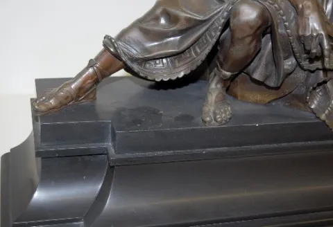 LeRoy French "St. Paul" Statue Clock: movement marked LeRoy, Paris; bronze statue on black marble base; 8 day; time and strike; black onyx dial; brass...