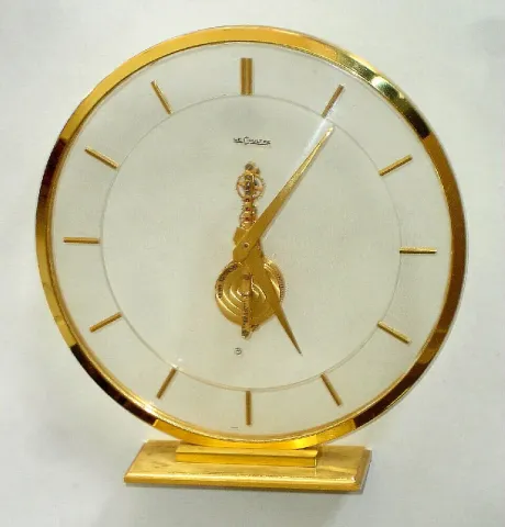 Swiss, LeCoultre, skeletonized desk clock with movement visible through the dial, 16 jewels, 8-day, c1980