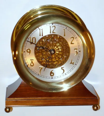 Chelsea Clock Co, Ship's Bell, "Centennial Edition - 1887--1997", Number 31, dated and numbered on rear, 6 inch Special dial with raised brass numerals pierced dial center revealing lever escapement.