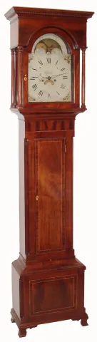 G. Chandlee, Winchester (Virginia), a painted dial, center seconds, rolling moon, 8-day movement, C.1790, now in a mahogany veneer over heavy hardwood case from the same period. (1790)