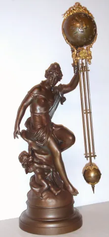 Ansonia Clock Company, Ansonia, Conn. "Fortuna" 8-day time only, double figure swing clock, c1900