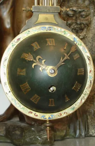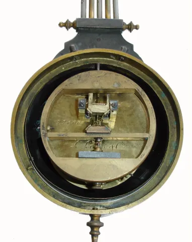French, Mysterious Novelty clock, the movement contained at the bottom of the pendulum, and the pendulum swinging without apparent impulse. The ring surrounding the pendulum spring mystery suspension, similar to a swinging arm clock, c1880