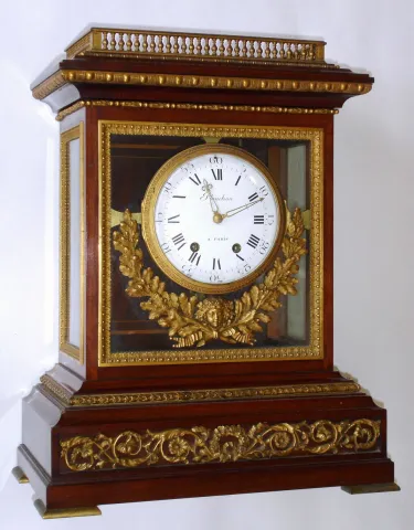 French, Planchon, Paris, in the style of Lepaute, an architectural mantle regulator, 8-day gong striking. Planchon is well known for making in the last quarter of the 1800s, all the styles of clocks that had been popular a century earlier, and he speciali