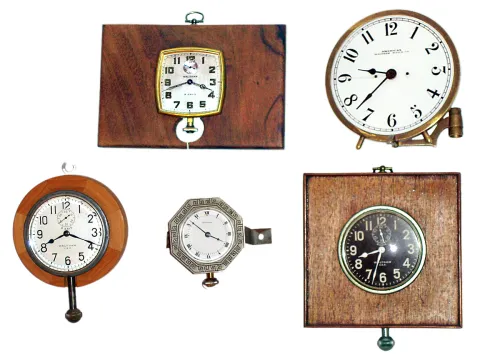 Five small Waltham clocks, early 20th century.
