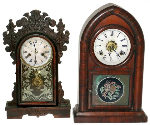 Two Connecticut time and strike shelf clocks including a Waterbury and Welch, late 19th century
