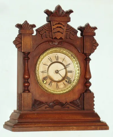 Ansonia Clock Co., New York, "Tivoli" cabinet clock 8 day time and strike spring driven movement in walnut case, c1895