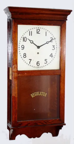 Arthur Pequegnat Clock Co., Canada, oak 8 day time only wall clock, c1920.