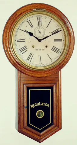 Waterbury Admiral oak 30 day time only wall clock, c1906.