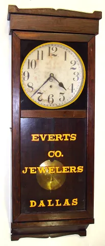 New Haven No. 3043 mahogany finish 8 day time only wall clock, c1917.