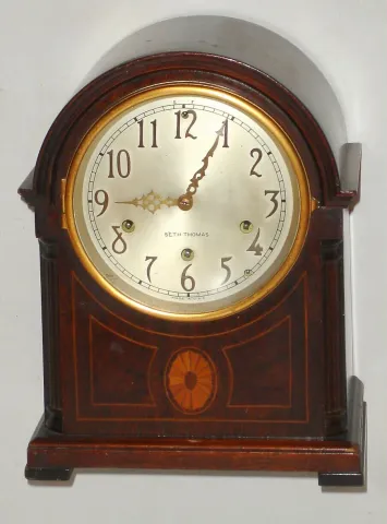 Seth Thomas Clock Co., Thomaston, Conn., "Chime Clock No. 53" 8 day spring driven quarter chime mantel clock in mahogany case, c1925