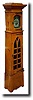 Pine case with green stained glass panels on door. Earlier 1870 German 30-hour weight-driven wood plate movement with brass gears. Hour strike. Dimensions: 6'h x 2'w x 1'd. Additional keywords: longcase, tallcase, grandfather