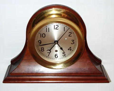 Chelsea Clock Co., 8 day timepiece that appears to be a larger model to one named the "Winchester". Case has the serial No. 855272. c.1982. This was given as a present as an engraving on the top reads: "Allison Reese, Big Red Plus, 1982".