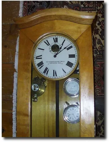 Case: Oak Veneer " tall. Painted metal dial. Brass movement complete with guages, subsidiary clock and all electrical connections. Works:Standard Elec...