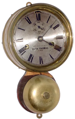 Seth Thomas Clock Co., Thomaston, Conn., outside bell 30 hour spring driven brass ship's bell clock, c1890