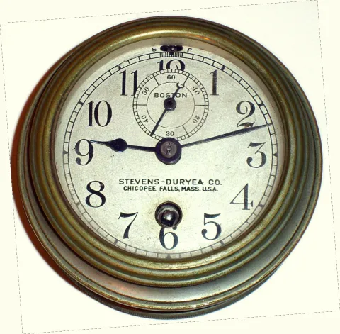 Chelsea Boston Stevens Duryea Co., Chicopee Falls, Mass. 8 day auto clock, c1904.