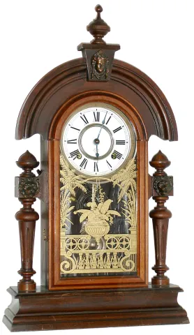 Ansonia Clock Co., New York, "King" 8 day time and strike spring driven walnut mantel clock, c1901
