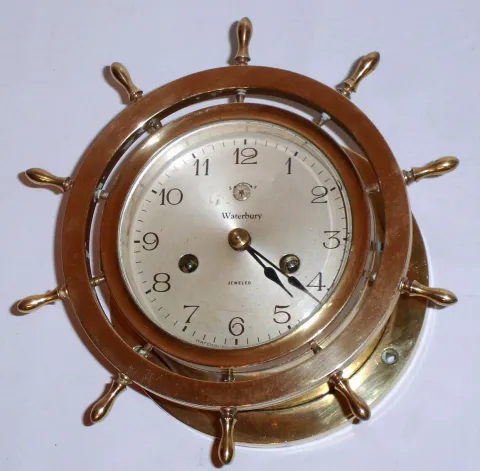 Waterbury Clock Co., Waterbury, Conn., "Ship's Bell No. 10" 8 day time and strike brass marine clock, c1925