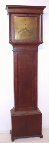 John Murch, Honiton English tall clock 8 day time and strike weight driven movement in flat top oak case with mahogany inlay and brass dial, c1760